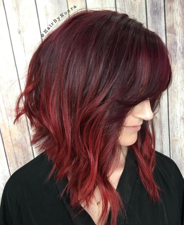 All you need is a smoldering dark hair color, a rusty hue, some messy curls accentuated with side bangs and voila! You’ve got an amazing inverted hairstyle! Dainty, long tendrils curl across the face and in the most beautiful manner, however the design of the cut is striking.