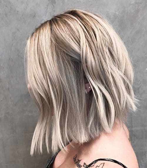 The Silver Ash Blonde with Dark Roots provides a striking contrast that’s both edgy and sophisticated. The silver tones offer a cool, metallic sheen, while the dark roots add depth and dimension. This style works well for oval and heart-shaped faces, highlighting their natural contours. It’s a high-fashion look that’s perfect for those who want to make a lasting impression, whether at work or out on the town.
