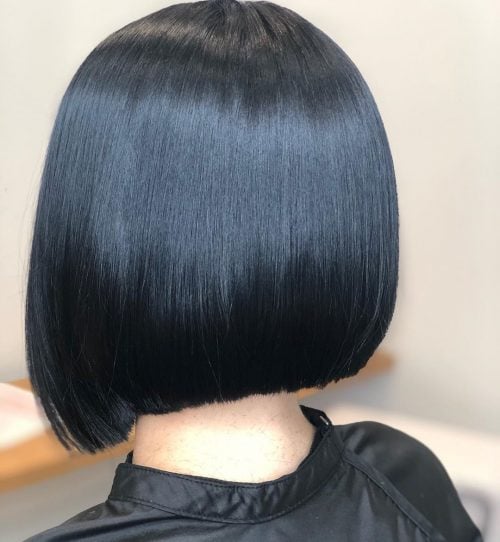 The darkest steel blue black bob is a sleek and modern choice for those who want a refined yet bold look. This style features a sharp bob cut with a deep steel blue black color, adding depth and sophistication. Suitable for round and square face shapes, the bob’s clean lines highlight facial features, creating a polished and chic appearance. The dark color adds an air of mystery and allure, making it a standout choice.