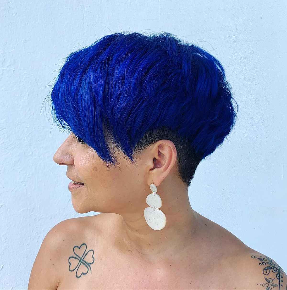 Dynamic dark royal blue is a luxurious and vibrant option for those who love a bit of shimmer. This look involves a deep blue base with metallic undertones, creating a stunning visual effect. It’s perfect for those with medium to long hair, where the metallic finish can be fully appreciated. This style is particularly flattering for all face shapes, adding a touch of modernity and sophistication. Dynamic dark royal blue is an excellent choice for anyone looking to make a statement with their hair while maintaining a sense of elegance.