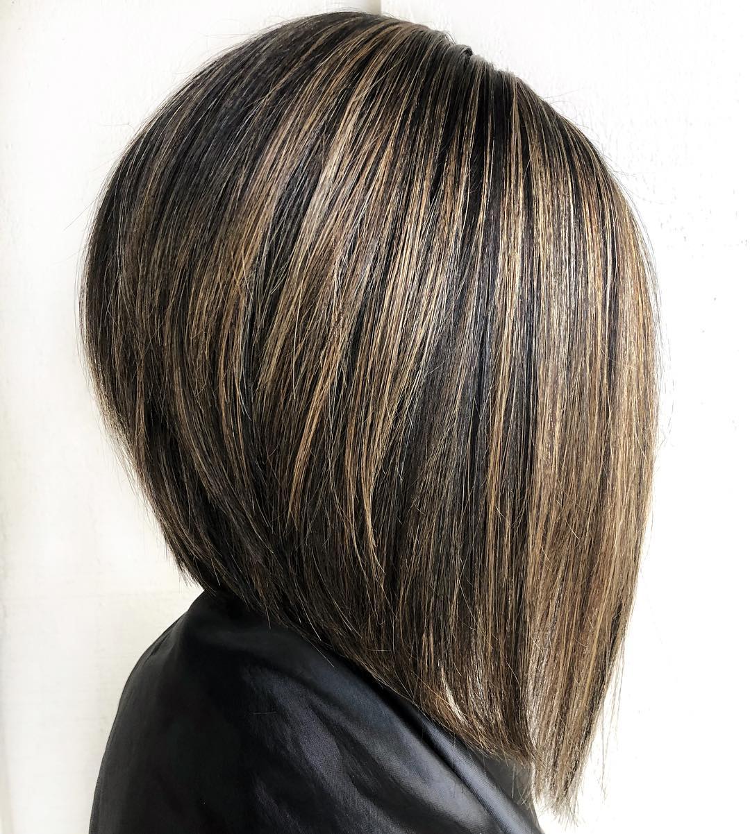 This bob inverted boasts an elegant color scheme that includes the sweet babylights and balayage and yet, it’s cool with its curvaceous back and an the angled front.