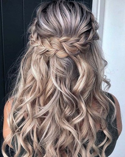 Boho ladies will certainly appreciate this style. This look is easy to wear in a daily basis, but can be transformed and adapted to suit the wedding. To achieve it, create a loose half-up crown braid, and then tie additional braids that are thicker or thinner in the hair that remains free. You can choose to use only one or more braiding techniques.