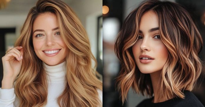 Face-framing highlights like a light strawberry blonde can add a playful touch to long brown hair. This style is perfect for those with round or oval faces, as the lighter strands draw attention to your features. The subtle contrast between natural brown and strawberry hues adds dimension, making your hair appear fuller and healthier. It’s a chic, low-maintenance option for anyone looking to refresh their look without committing to a full dye job.