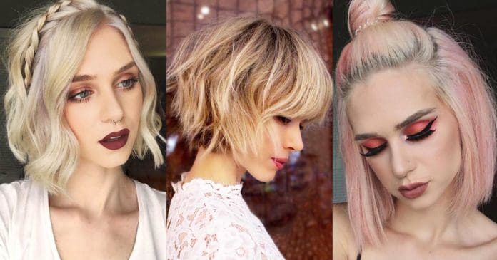 This style is perfect to wear on straight hair. The layers give hair volume and give it more fuller look. It’s a short bob haircut is a perfect way to cool down and look stylish throughout summer. The blonde color of hair that this model has picked is a perfect match to the skin color. The cut emphasizes her featuresand complements the shape of her face. This is a short bob in comparison with other haircuts for bobs which are quite long.