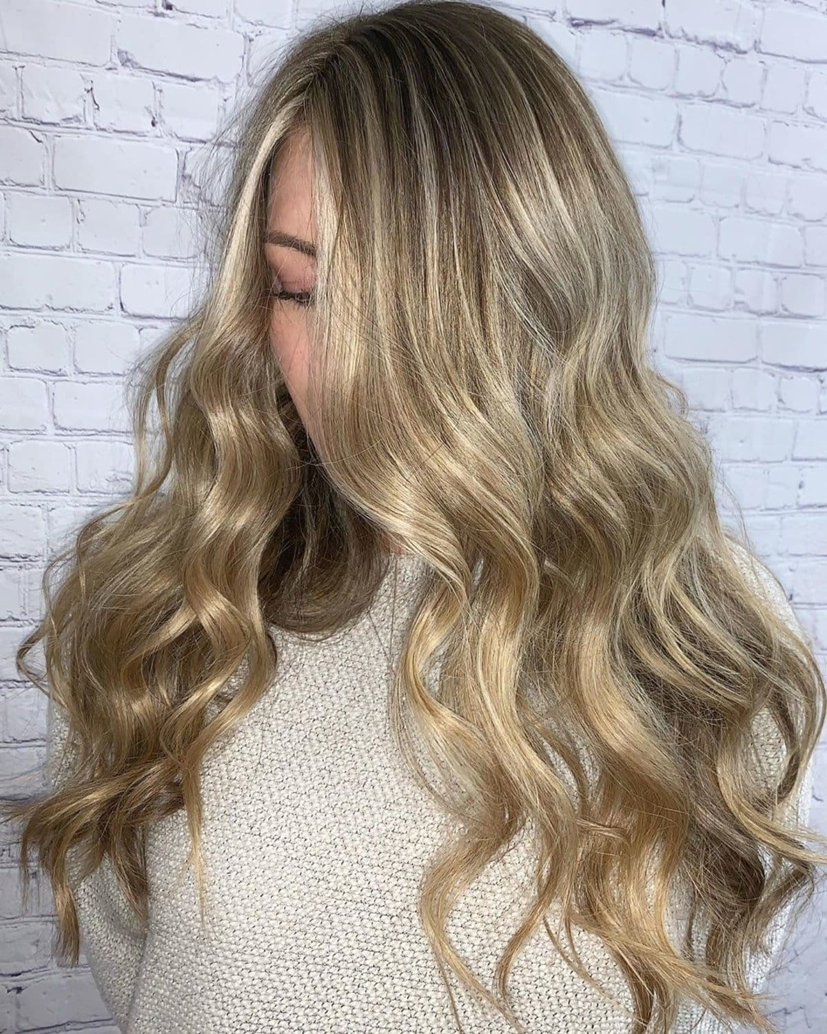 Sandy golden blonde highlights on dark brown hair offer a stunning contrast that’s both eye-catching and sophisticated. This style blends the natural warmth of dark brown hair with the brightness of sandy golden blonde highlights, creating a balanced and harmonious look. It’s particularly flattering for those with warm skin tones and can be worn in various styles, from loose waves to a sleek straight look.