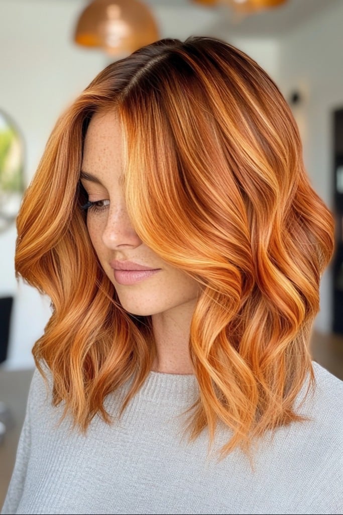 Finally, copper and amber balayage is a rich, glowing combination that works on nearly all hair types. Perfect for diamond or oval faces, this blend elevates natural beauty with a touch of extravagance.