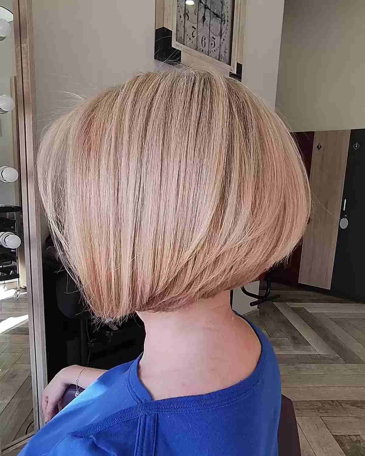 Layered bobs continue to captivate the fashion scene, and the Blonde Bobbed Haircut with Visible Layering is no exception. This cut is all about texture and volume, making it perfect for those with fine or thin hair. The layers create a dynamic silhouette that flatters long and oval face shapes, adding fullness where needed. Blonde hues, especially golden and caramel tones, enhance the dimensional effect, giving your hair a sunlit glow. Whether styled straight for an elegant appearance or tousled for a casual vibe, this layered bob is versatile enough to suit any occasion.