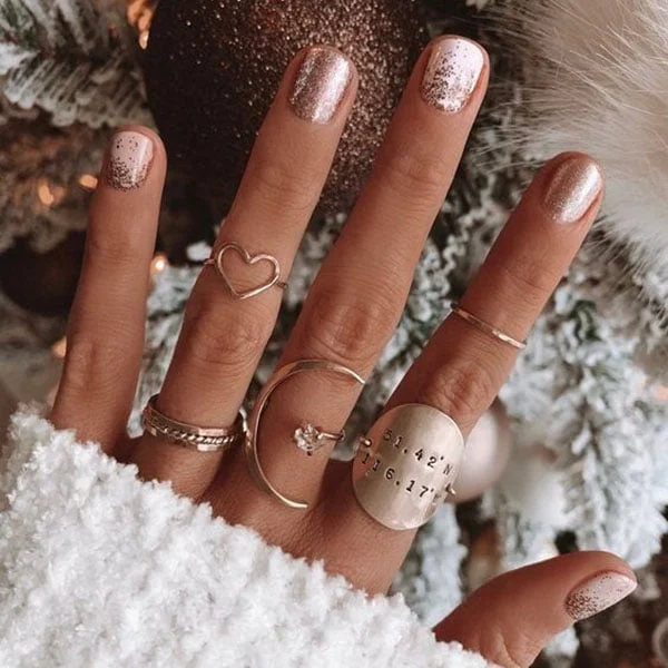 Glitter nails are funand elegant, and the perfect complement for any manicure that is winter-themed. Shiny polish can be worn in many different ways, including a straight line on the tip with glittery snowflakes or over your favorite shade. For the most chic and fashionable look, choose neutrals that sparkle. In this instance it’s all about less such as with an unobtrusive foundation coat, and gold glitter. The beauty to glitter polishes is the fact that it’s attractive and intriguing. Some may be hesitant about wearing it due to the belief that it’s only suitable for young women or it’s not tasteful enough. We’re here to inform you that it’s definitely not, and this is the time that you can rock glittery nails.