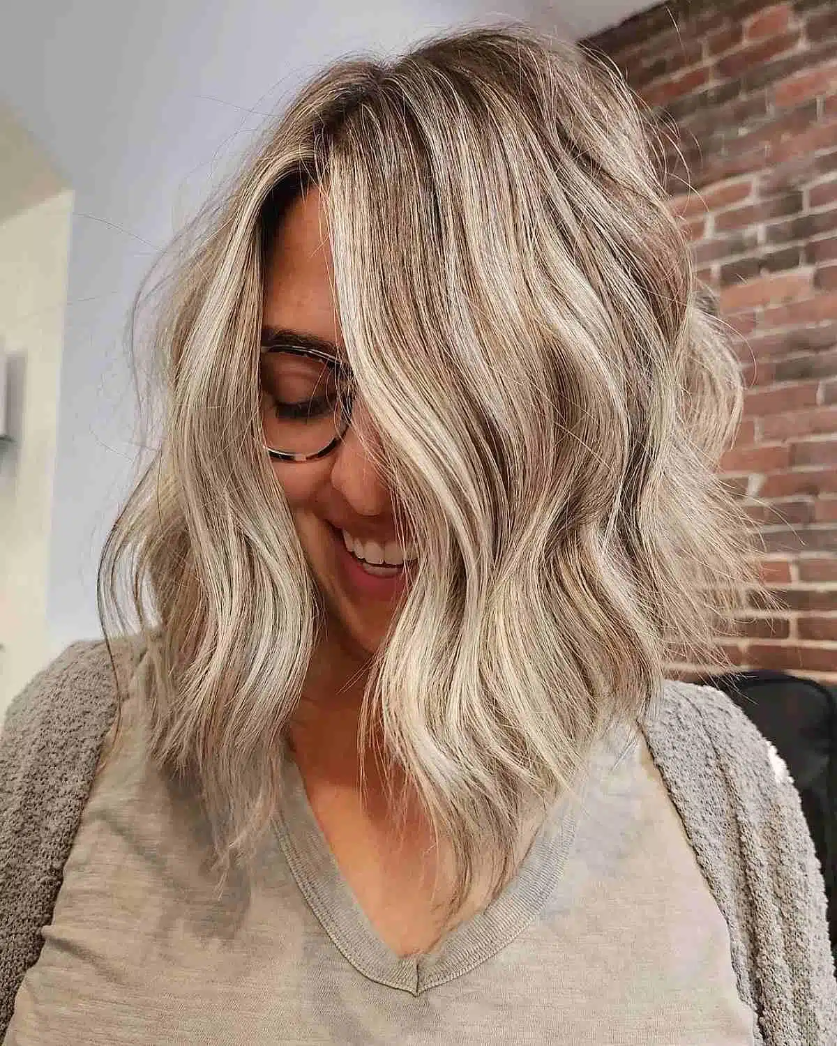 Tousled Lob with No Bangs