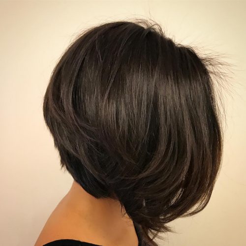 Thick hair benefits from strategic internal layers that remove weight while preserving shape. The stacked back lifts the crown and prevents a heavy, triangular outline. Angled front lengths elongate the face and make styling quick. Subtle highlights or lowlights emphasize the movement without looking stripy. Ask for soft texturizing at the ends to keep the finish light and swingy.