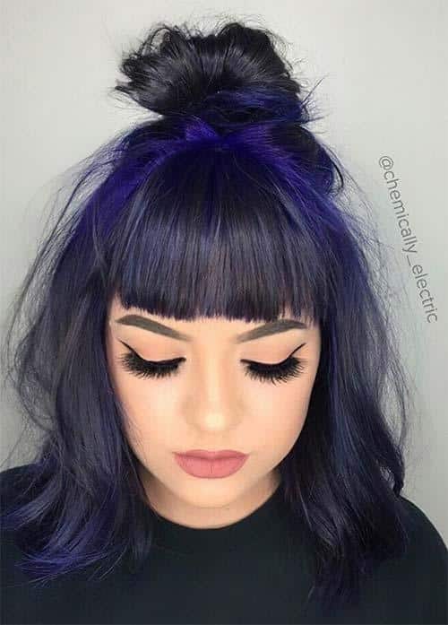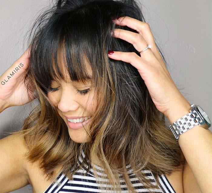 22. Midnight Balayage with Uneven Bangs