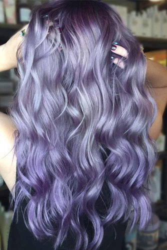 What better way to begin your purple style other than with a shiny silvery violet hairstyle? This stunning gradient starts off in a dark gray and gradually the hue fades to the smoky purple, with shiny tips. It’s cool in winter and is perfect for people with neutral skin tones.