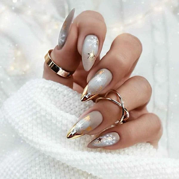 There’s no better time to shine than the time of the holidays. It’s the only moment of the year you can wear as many as you want, whether a sequin-adorned dress or adding them to your manicure. You can make it as either subtle or extravagant as you like, depending on what you prefer. If you want a fashionable style, use neutral colors and complement them with glittery snowflake embellishments. If you’d like your class to be more noticeable, you can experiment using gold tips on your nails or by painting the nails with metallic paint. It’s a stunning and feminine look that can be used for nails of any length or shape.