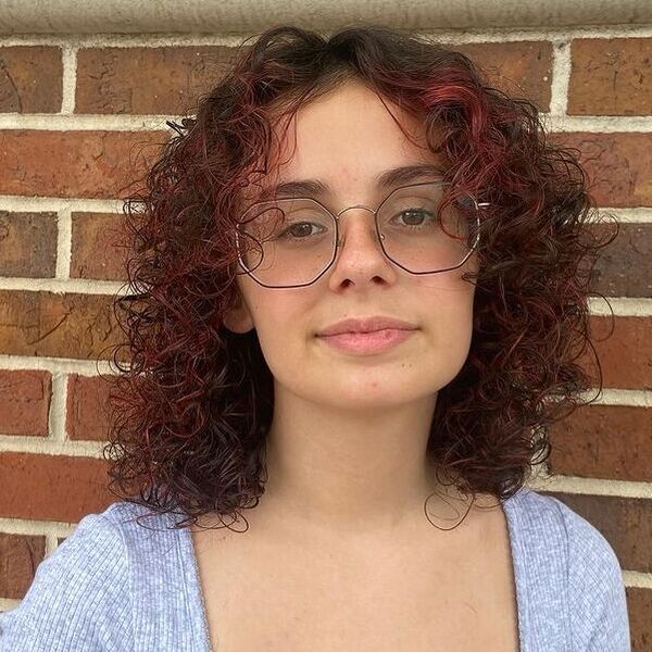 3. Curly Hair and Red Highlights