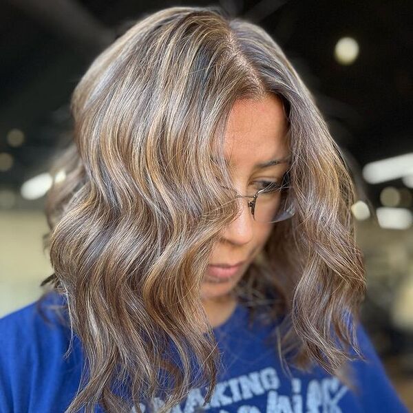 Wow, this look has big curls, with dark lowlights incorporated. This look is ideal for ladies that have thick locks who enjoy styling it with large curls. Take it off to the side and you’re done with your new hairstyle.