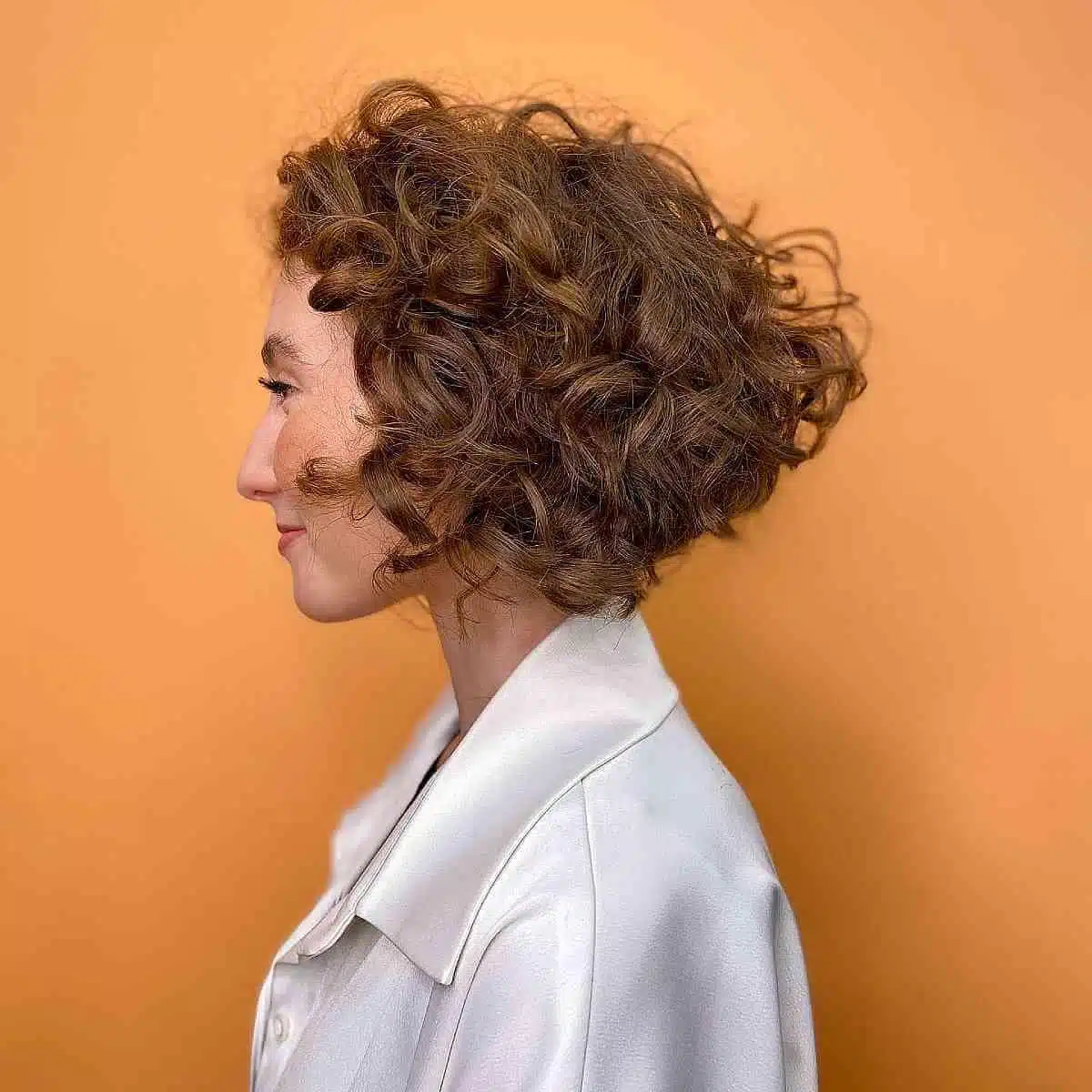 The Angled Curly Bob is a striking and modern hairstyle where the hair is shorter at the back and gradually longer towards the front. This cut is perfect for round and heart-shaped faces as it elongates the neck and adds sharpness to the jawline. The angled shape creates a contemporary edge while still remaining soft and feminine. It’s a go-to style for women who love a balance of elegance and boldness. Style with a volumizing mousse and diffuse to enhance the natural curl pattern.