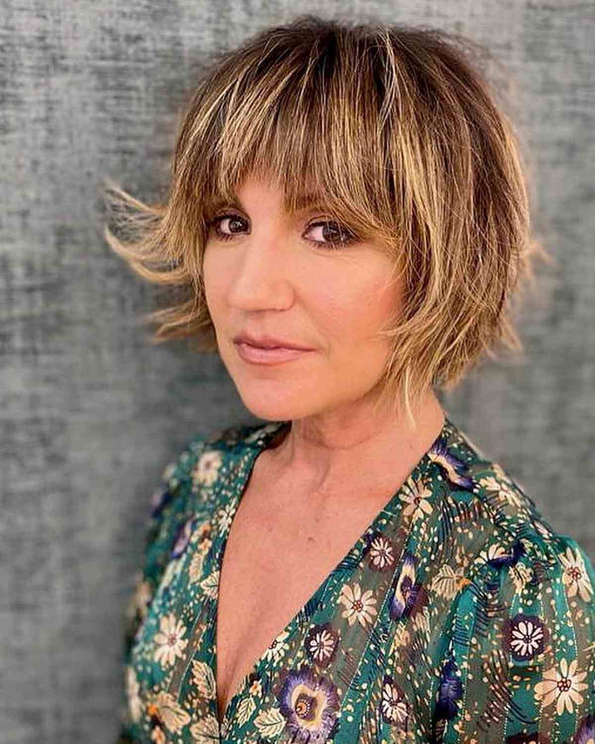 Keep the length you love while leaning into trend-right texture. A long choppy bob delivers dimension that’s easy to restyle. It suits oval and square faces, especially when the fringe is softly curved. Use a blow-dry brush to smooth, then add waves from mid-length to ends. Tousle with dry texture spray for that breezy finish.
