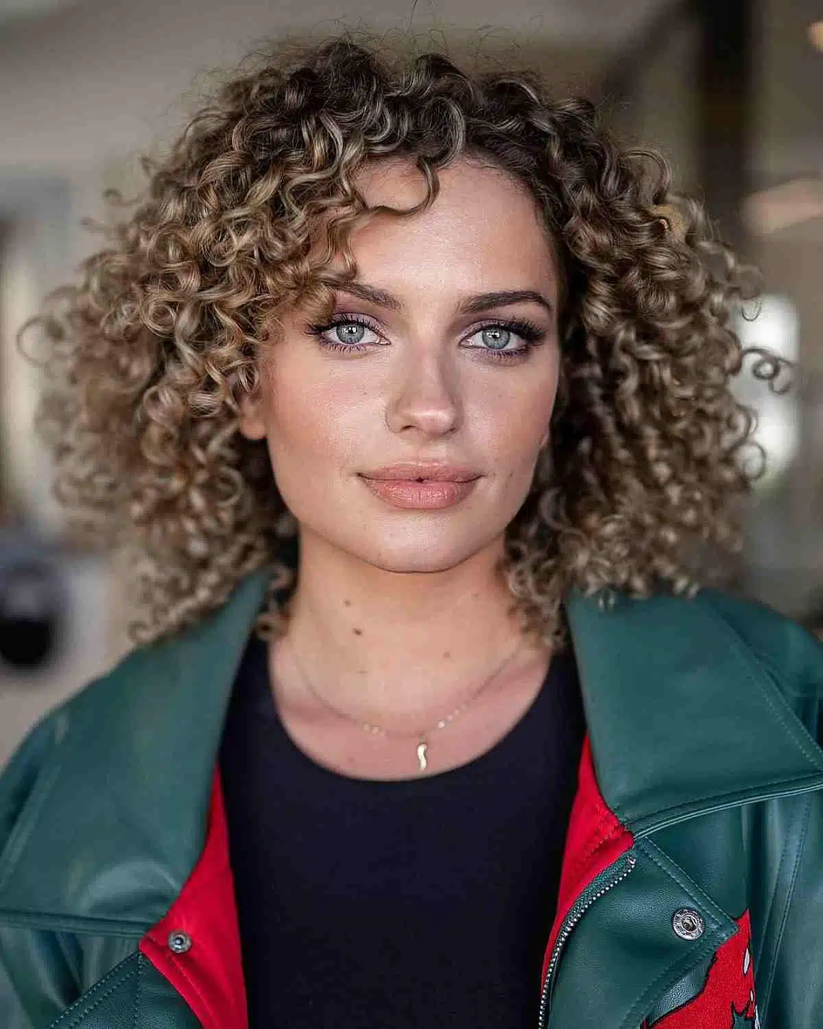 Blonde highlights add depth and brightness to your curls. This style is perfect for those who want to enhance their natural hair color with a bit of sunshine. It works well for all face shapes, adding dimension and a fresh look.