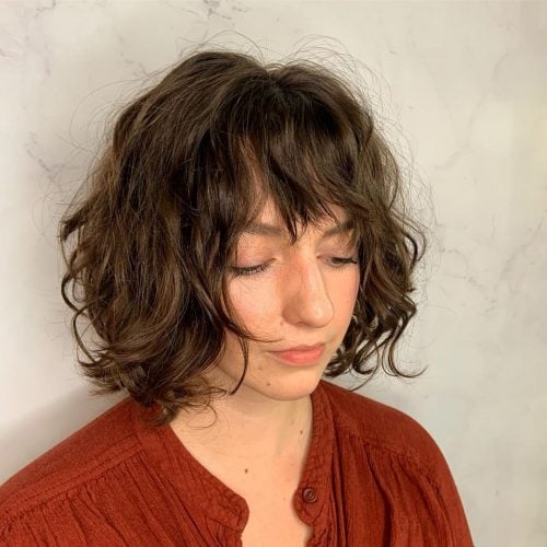 Curly hair shines in a shaggy bob with layered definition. The cut removes bulk while encouraging curl spring and movement, creating a lively, face-framing shape. It flatters oval and heart-shaped faces and works well with curl patterns from wavy to coily. Style with a curl cream or gel on damp hair and diffuse on low, scrunching gently to enhance bounce. Ask your stylist for dry-cut detailing to perfect the silhouette curl by curl.