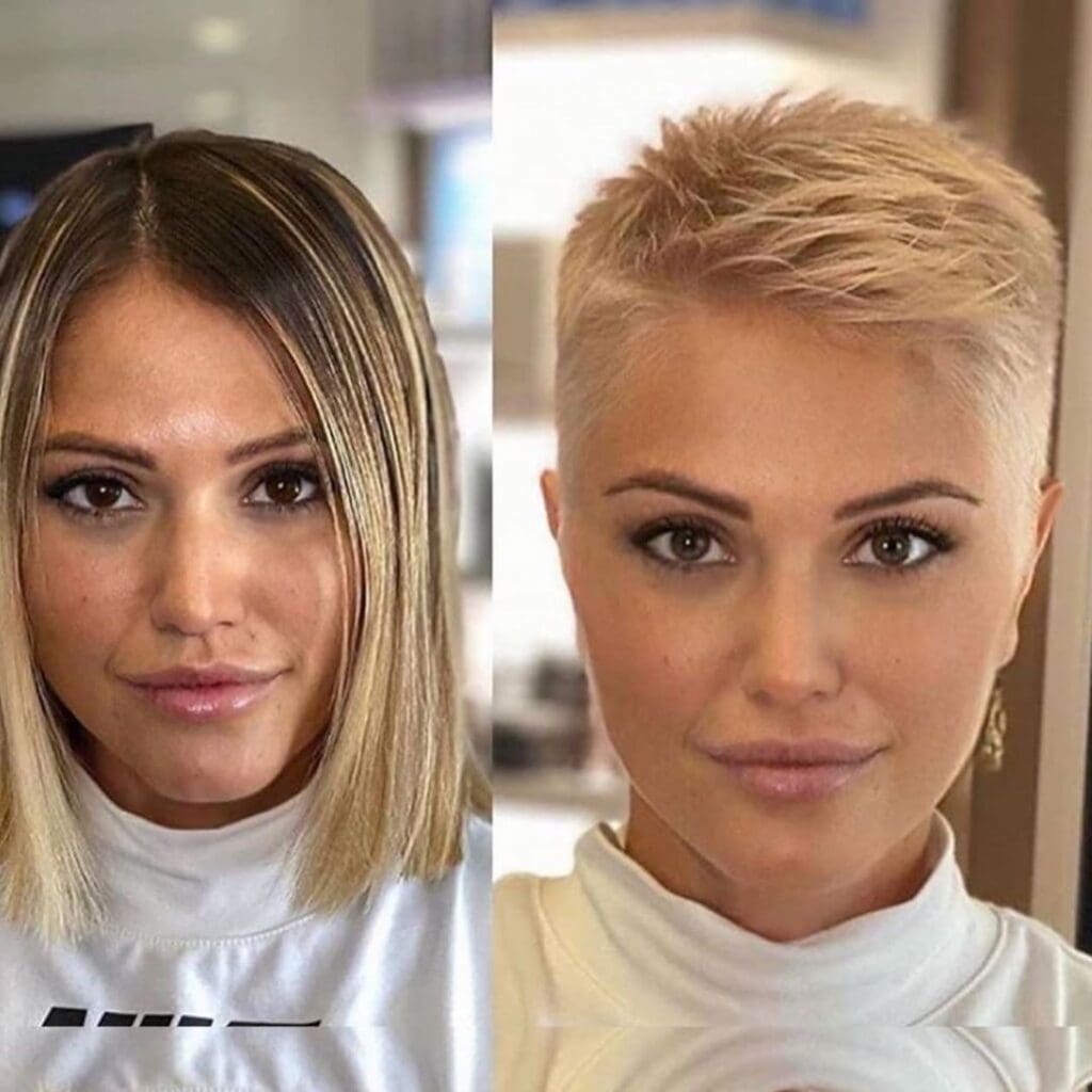 It’s incredible the extent to which your haircut can contribute to your appearance! This makeover is a great job at making the model’s face appear more open and highlighting all her finest highlights. The first design features an off-center dividing line that is suitable for an oval or round face. However, it appears as if it’s going to become flat and oily when not taken care of properly. The pixie cut shaves off the curtain effect and highlights the model’s oval face with a trendy texture on the top and a sweet baby-blonde color that is all-over.