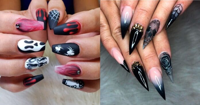 Here are some amazing Halloween nail designs you can try for your Halloween celebration. They include terrifying coffin-shaped Halloween nails Halloween press-on nails halloween Stiletto Nails, short Halloween acrylic nails, and Halloween nail art stickers.